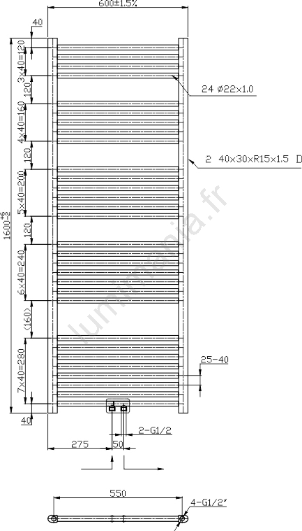 Novaservis - Radiateur sèche-serviettes de salle de bains 544W/230V 160x60 cm chrome brillant droit