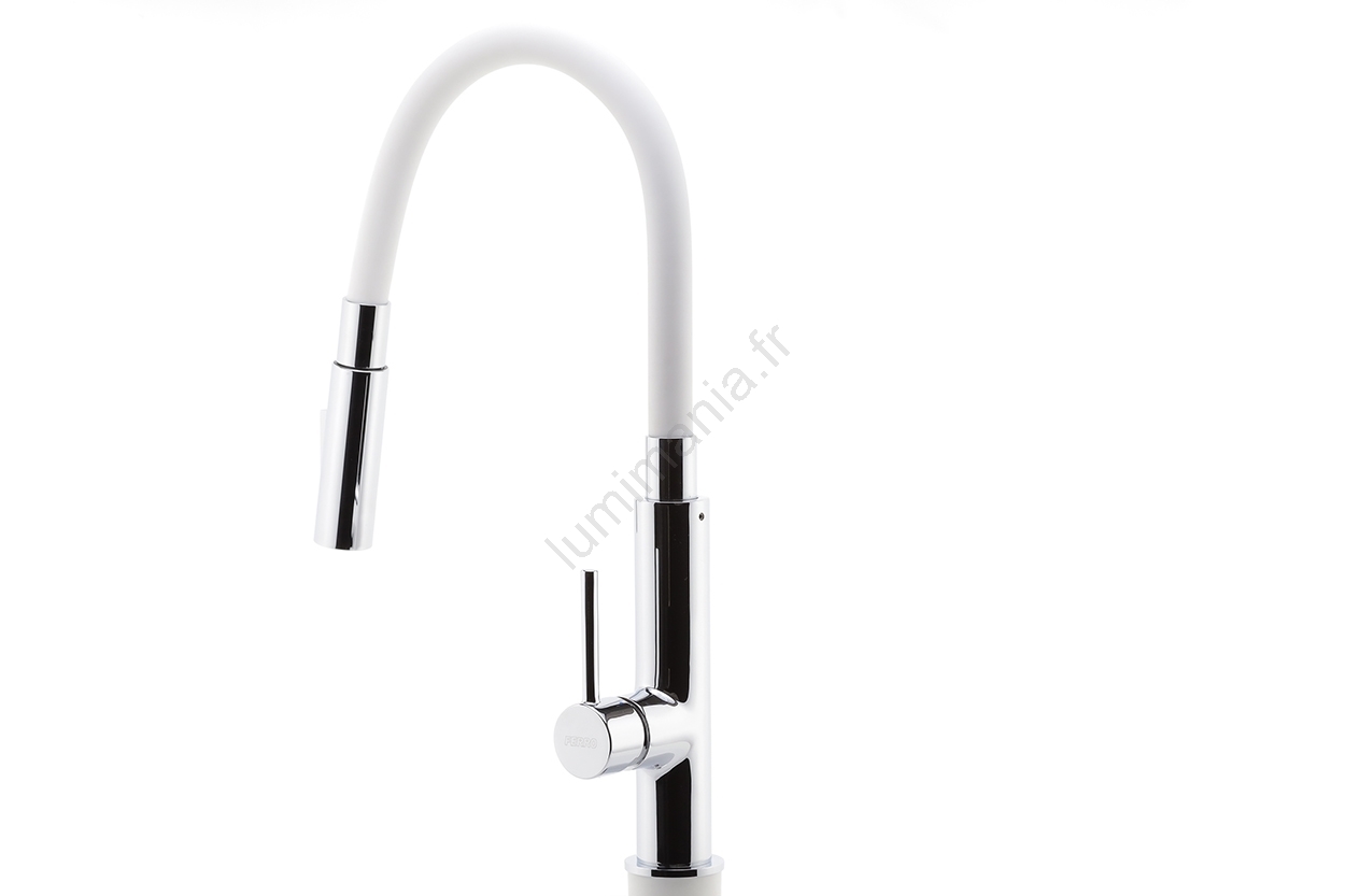 FERRO - Robinet d'évier avec bras flexible chrome brillant/blanc