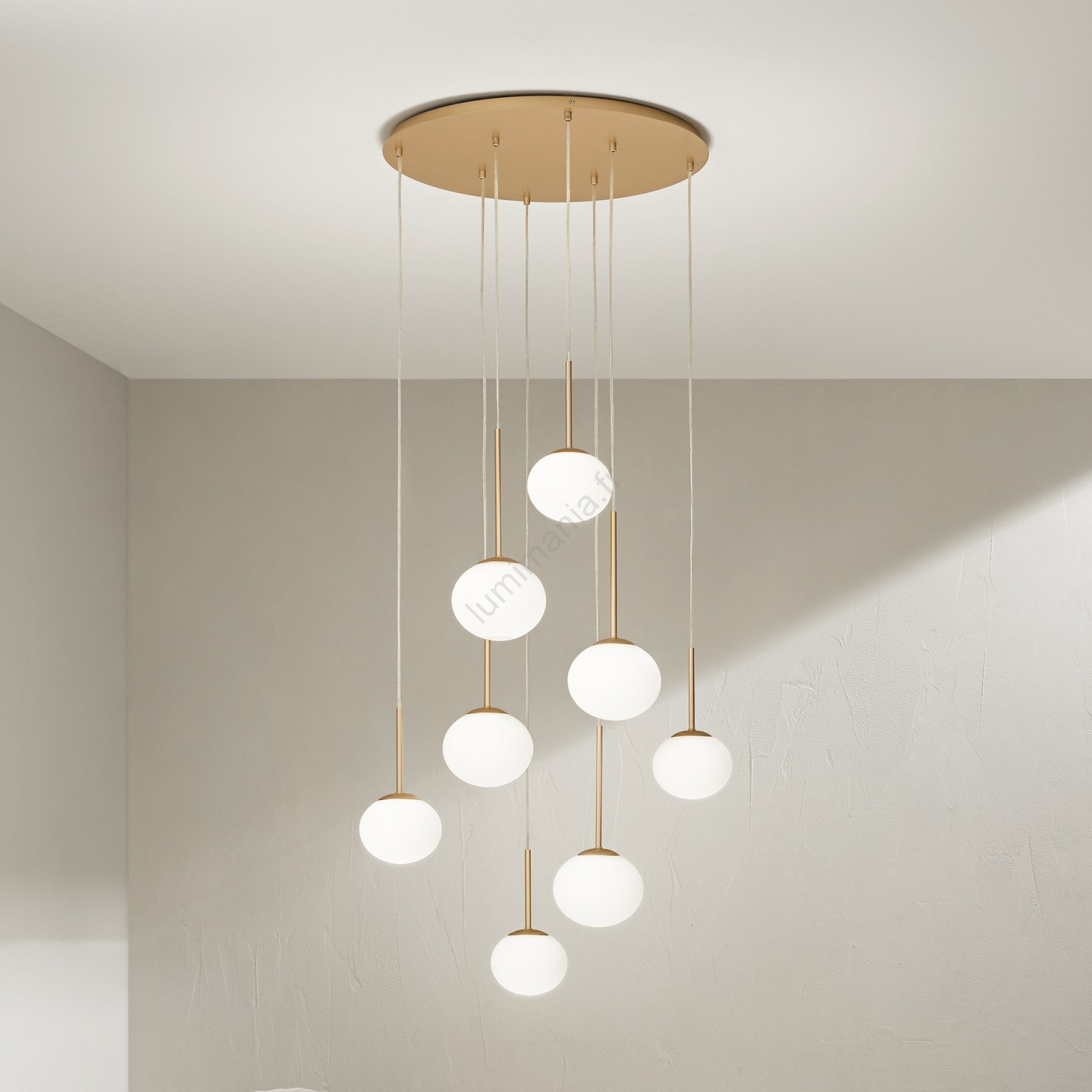 Ondaluce - Lustre sur câble JEWEL 8xE14/10W/230V Ø 70 cm doré/blanc caractérise un design agréable et fonctionnel.  Une ampoule à culot E14 convient pour ce luminaire. Ici, vous pouvez acheter d'autres ampoules à des prix avantageux. Vous aurez un ajout intéressant dans votre intérieur.