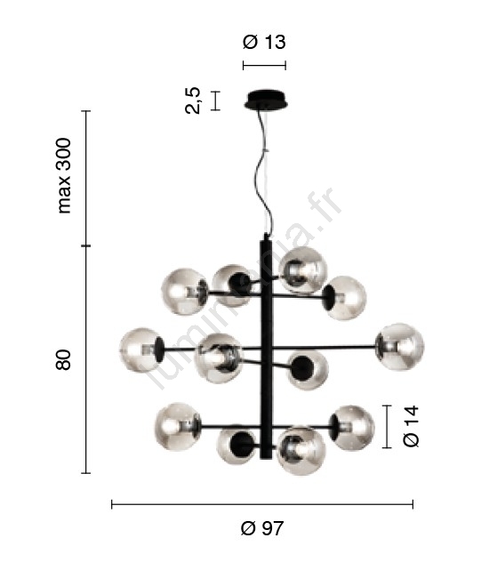 Ondaluce - Lustre sur câble ELISEO 12xE14/10W/230V pr. 97 cm doré/beige fumé caractérise un design agréable et fonctionnel.  Une ampoule à culot E14 convient pour ce luminaire. Ici, vous pouvez acheter d'autres ampoules à des prix avantageux. Vous aurez un ajout intéressant dans votre intérieur.