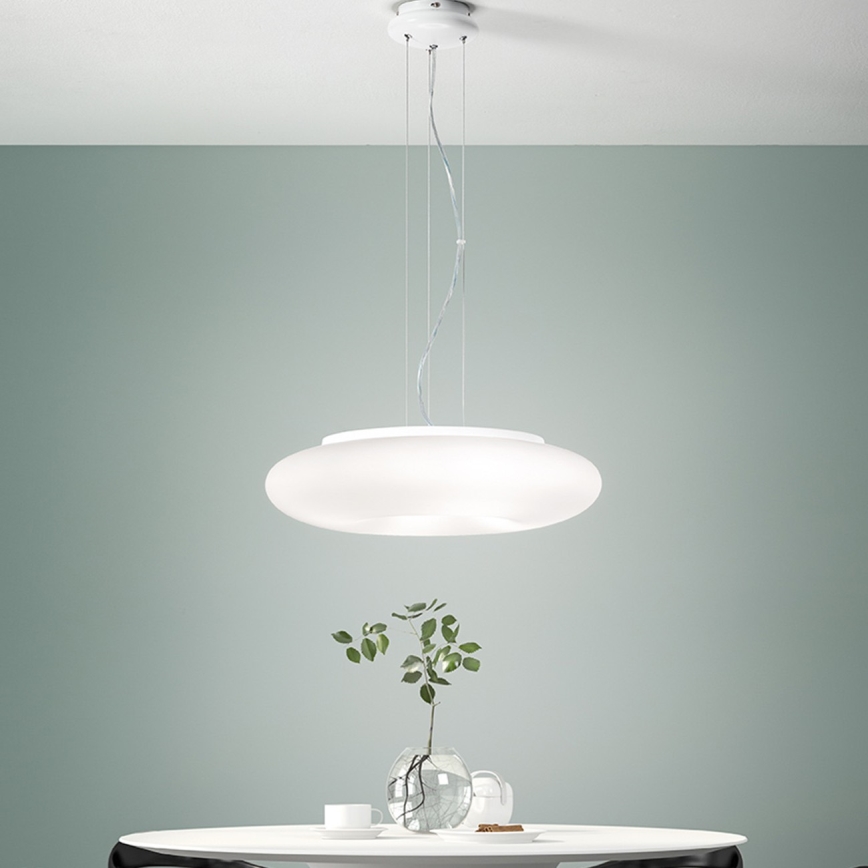 Ondaluce - Suspension sur câble DODI 2xE27/15W/230V Ø 53 cm blanche caractérise un design agréable et fonctionnel.  Une ampoule à culot E27 convient pour ce luminaire. Ici, vous pouvez acheter d'autres ampoules à des prix avantageux. Vous aurez un ajout intéressant dans votre intérieur.