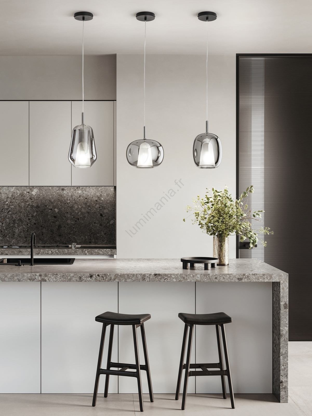 Ondaluce - Suspension sur câble THELMA 1xE27/15W/230V Ø 19 cm noir/gris fumé caractérise un design agréable et fonctionnel.  Une ampoule à culot E27 convient pour ce luminaire. Ici, vous pouvez acheter d'autres ampoules à des prix avantageux. Vous aurez un ajout intéressant dans votre intérieur.