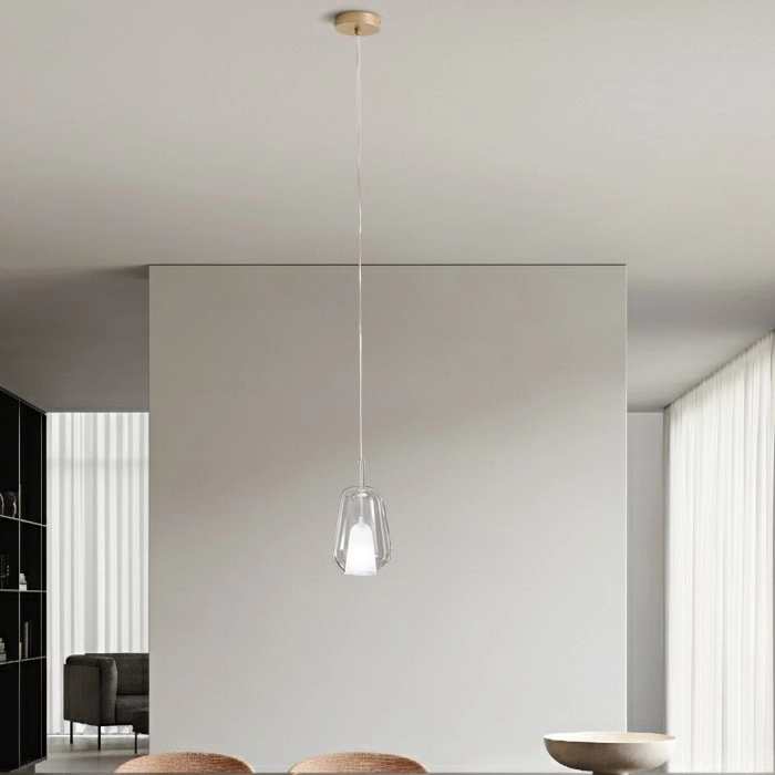Ondaluce - Suspension sur câble THELMA 1xE27/15W/230V Ø 19 cm doré/transparent caractérise un design agréable et fonctionnel.  Une ampoule à culot E27 convient pour ce luminaire. Ici, vous pouvez acheter d'autres ampoules à des prix avantageux. Vous aurez un ajout intéressant dans votre intérieur.