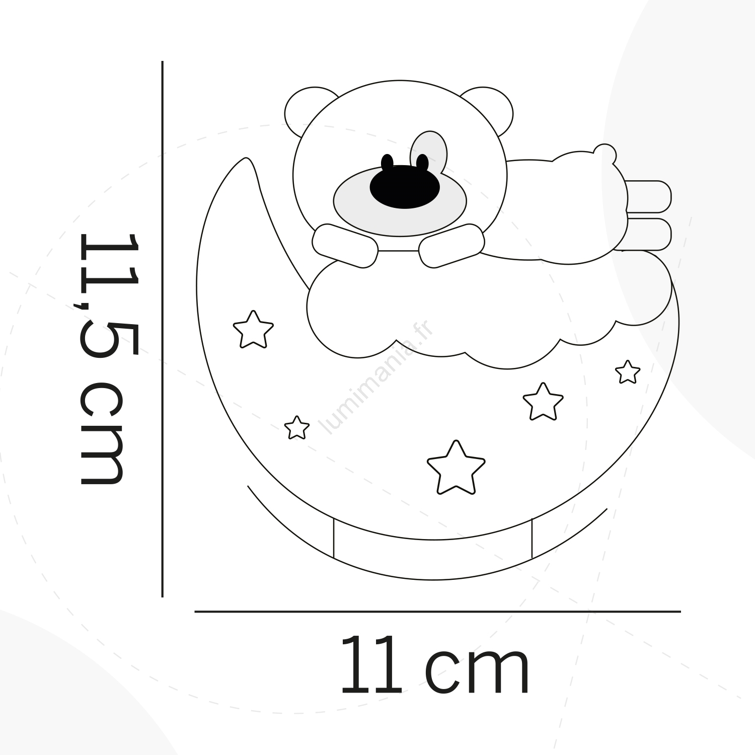 • La base est constituée d'un croissant de lune d'un bleu doux, agrémenté de petites étoiles mises en valeur, qui se balance doucement au toucher.