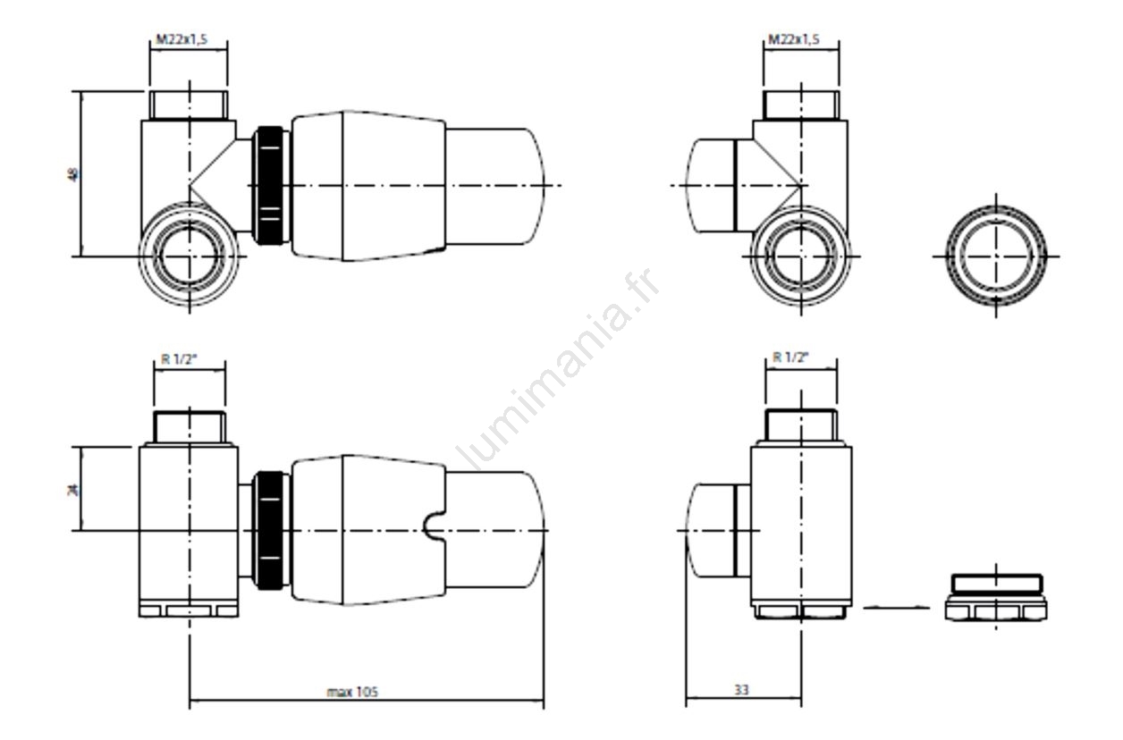 P.M.H. INTER-RB - Vanne avec tête thermostatique INTER droite/noire