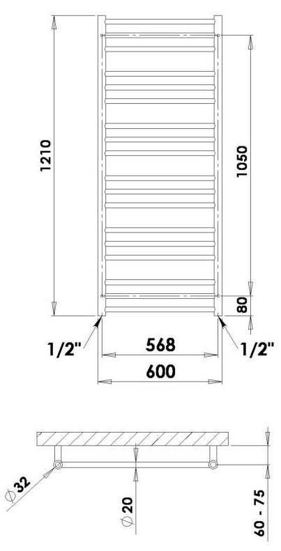 P.M.H. SN4C - Sèche-serviettes en échelle pour salle de bains SORANO 470 W, 121 cm, chrome brillant