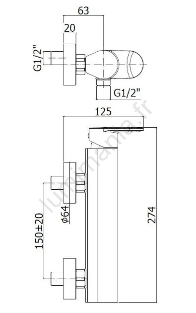 • Entraxe mural : 150 mm.