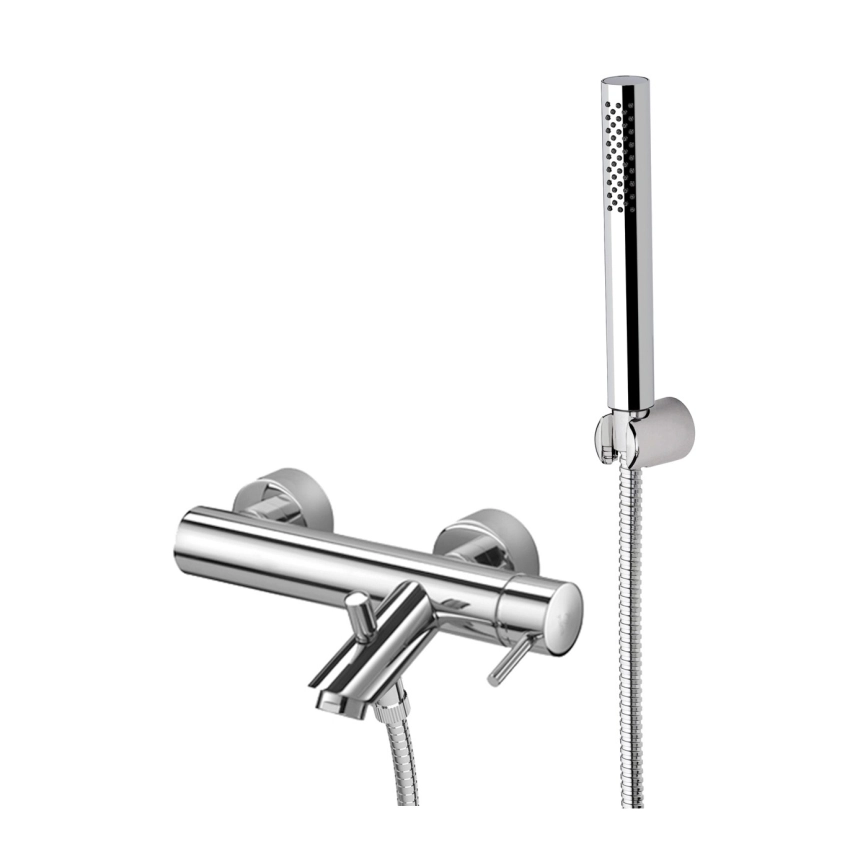 • Comprend une douchette à main, un flexible de douche, un support et des rosaces de finition.
