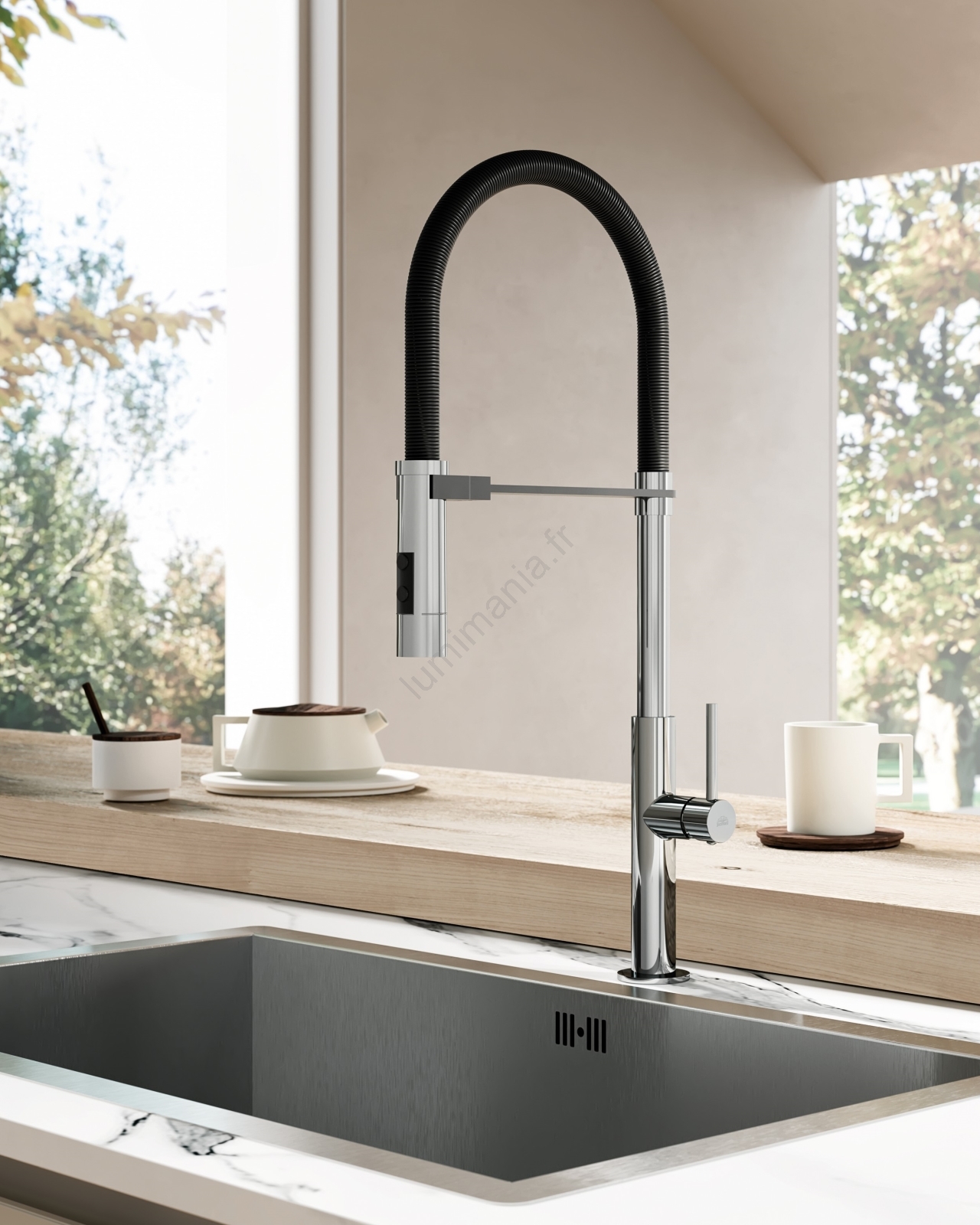 • Mitigeur de cuisine Paffoni Candy au fini chrome noir.