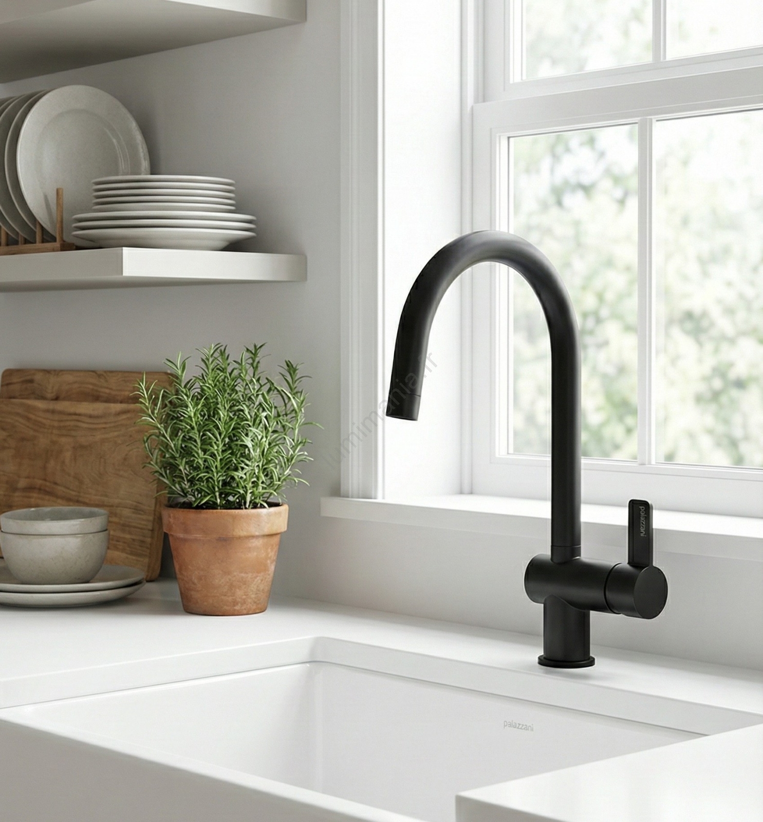 • La finition est agréable au toucher et se marie parfaitement avec les accessoires et les éviers noirs.