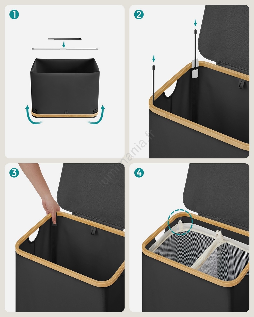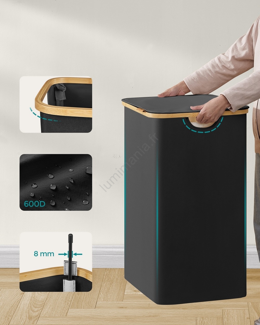 • Le couvercle se manipule d'une seule main, vous permettant de couvrir facilement votre linge - le couvercle empêche la propagation des odeurs et protège le linge de la poussière.