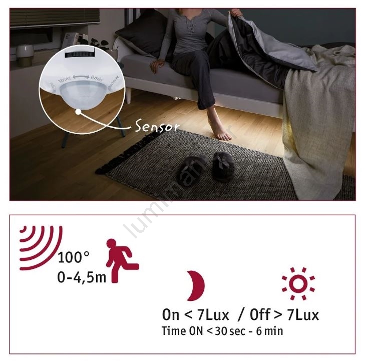 • Dès que vous quittez le lit, l'éclairage est activé par le détecteur et permet de se déplacer en toute sécurité dans la pièce.