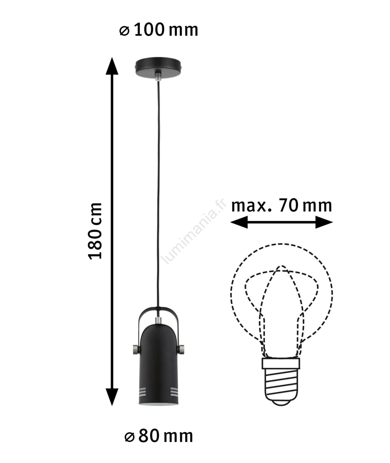 • Paulmann 79766 - Suspension LED LAVEA 1xE27/8W sur câble, 230V, noire