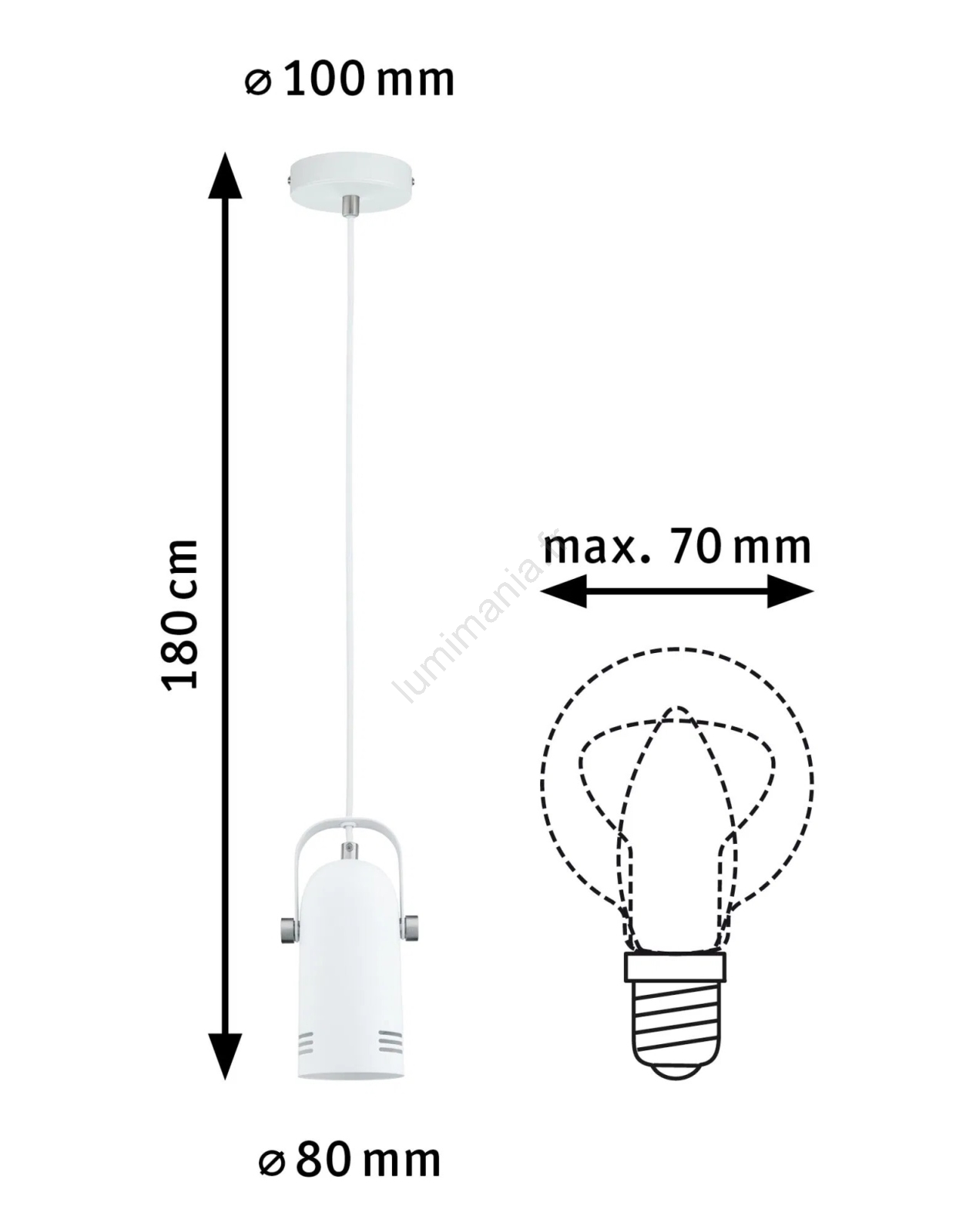 Paulmann 79767 - LED 1xE27/8W Suspension à câble LAVEA 230V blanche