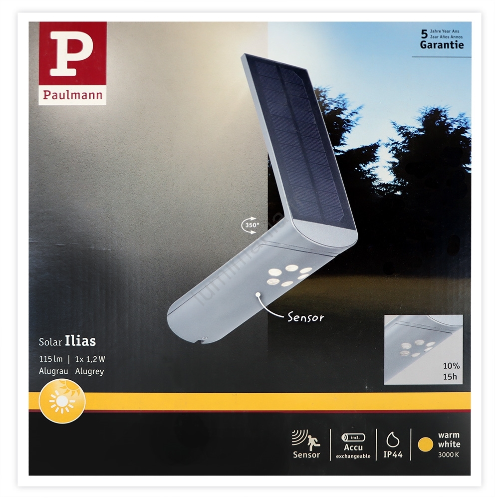 Paulmann 94261 - LED/1,2W IP44 Applique murale solaire avec détecteur ILIAS 3,7V 1800 mAh