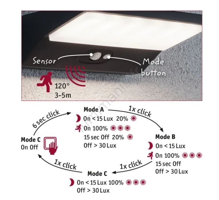 Paulmann 94333 - Applique murale extérieure avec détecteur HOUSE 230V LED/7,4W IP44
