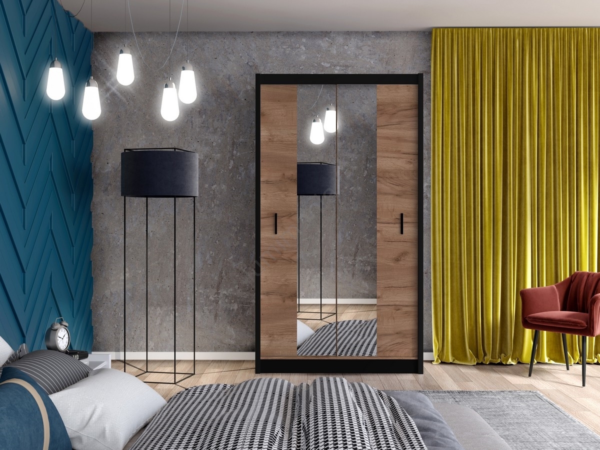 Armoire avec miroir MIRO 120x215 cm chêne craft/noir
