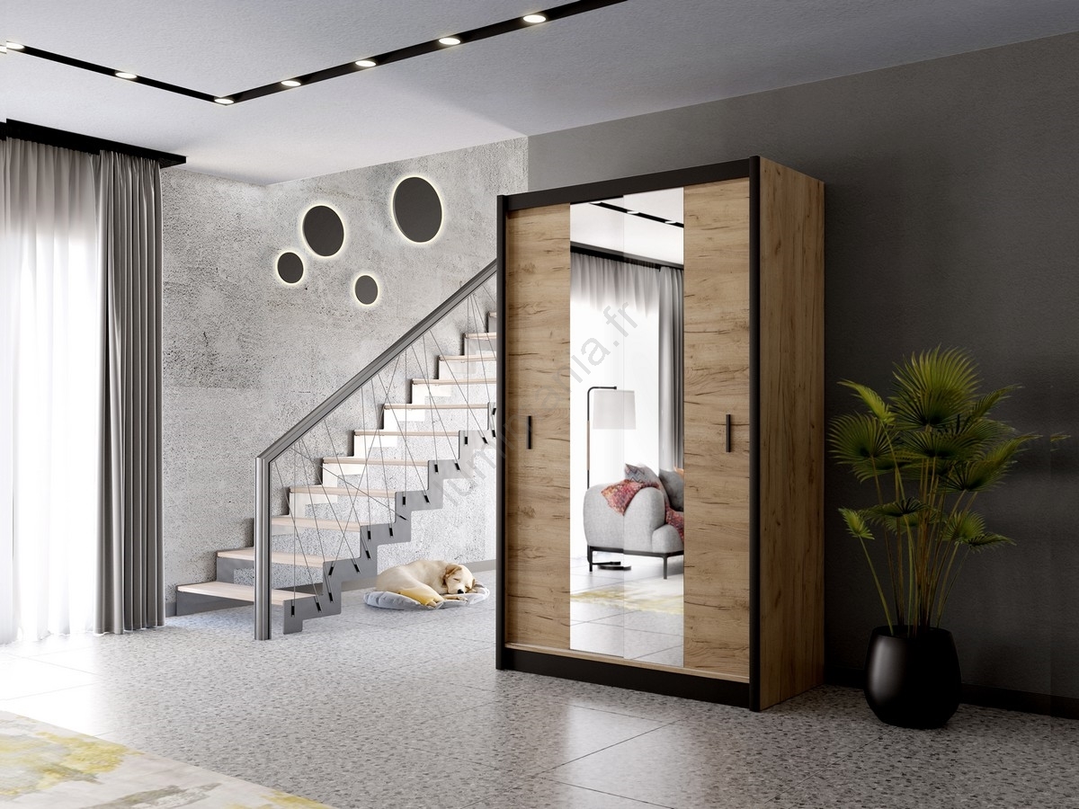 Armoire avec miroir MIRO 150x215 cm chêne craft/noir