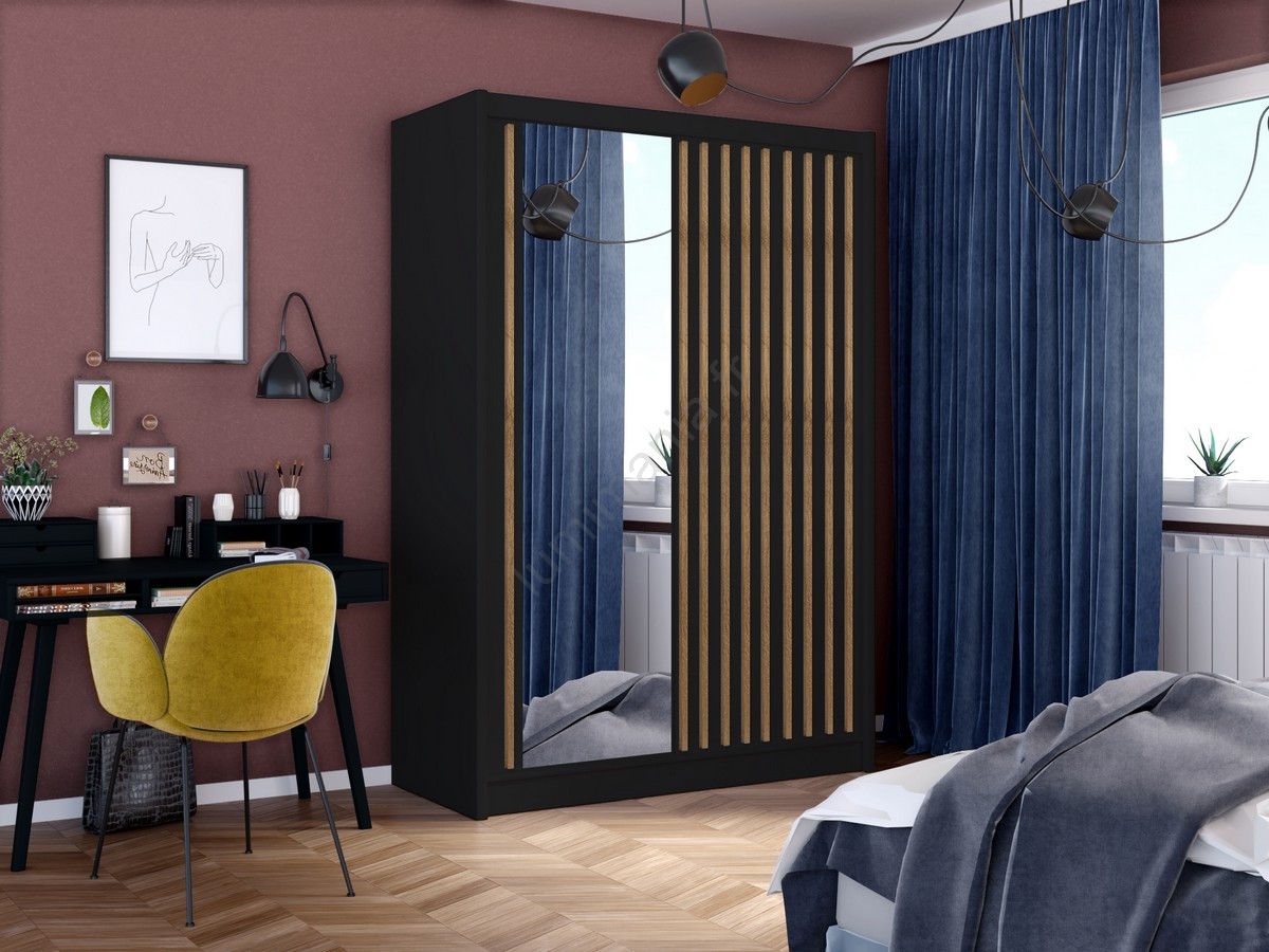 Armoire SANTINO 150x215 cm avec miroir noir/chêne craft