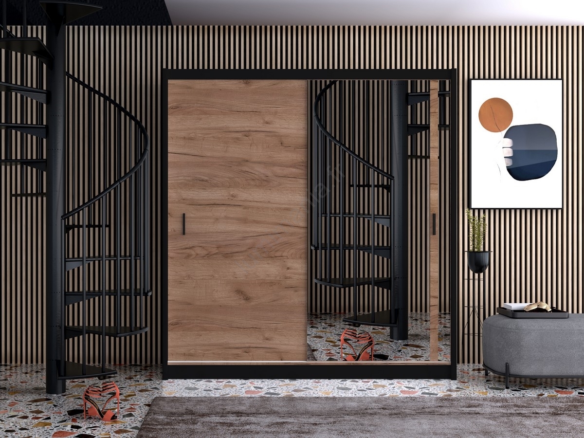 • Armoire avec miroir MIRO 203x215 cm chêne craft/noir