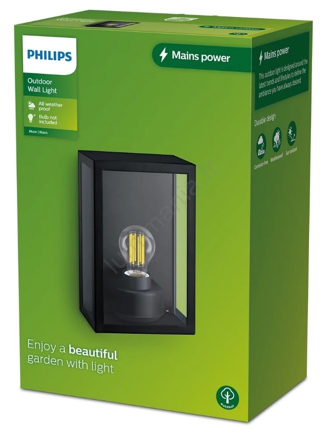 Philips - Applique murale extérieure ALZOR 1xE27/25W/230V IP44 caractérise un design agréable et fonctionnel.  Une ampoule à culot E27 convient pour ce luminaire. Ici, vous pouvez acheter d'autres ampoules à des prix avantageux. Vous aurez un ajout intéressant dans votre intérieur.