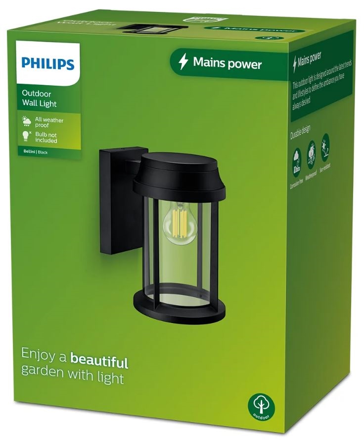Philips - Applique murale extérieure BELLINI 1xE27/25W/230V IP44 caractérise un design agréable et fonctionnel.  Une ampoule à culot E27 convient pour ce luminaire. Ici, vous pouvez acheter d'autres ampoules à des prix avantageux. Vous aurez un ajout intéressant dans votre intérieur.