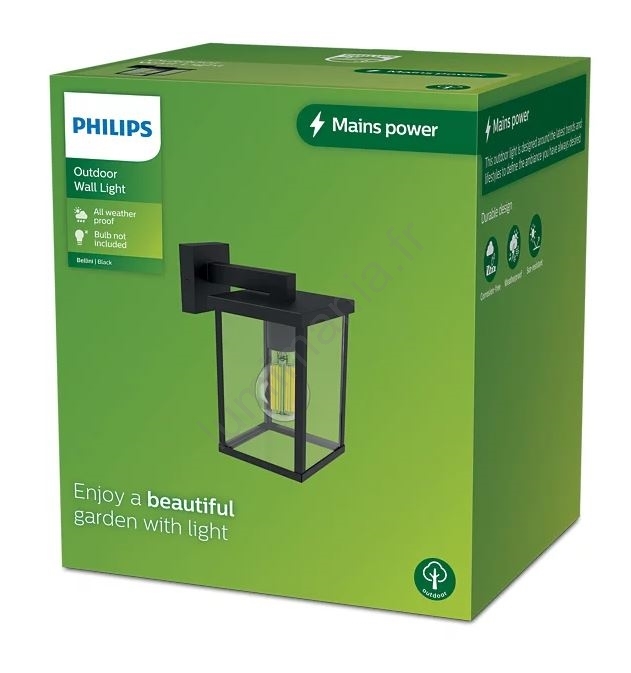 Philips - Applique murale extérieure BELLINI 1xE27/25W/230V IP44 caractérise un design agréable et fonctionnel.  Une ampoule à culot E27 convient pour ce luminaire. Ici, vous pouvez acheter d'autres ampoules à des prix avantageux. Vous aurez un ajout intéressant dans votre intérieur.