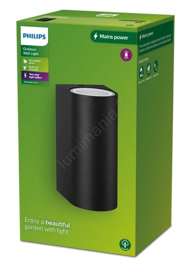 Philips - Applique murale extérieure NIGHTINGALE 2xGU10/35W/230V IP44 caractérise un design agréable et fonctionnel.  Une ampoule à culot GU10 convient pour ce luminaire. Ici, vous pouvez acheter d'autres ampoules à des prix avantageux. Vous aurez un ajout intéressant dans votre intérieur.