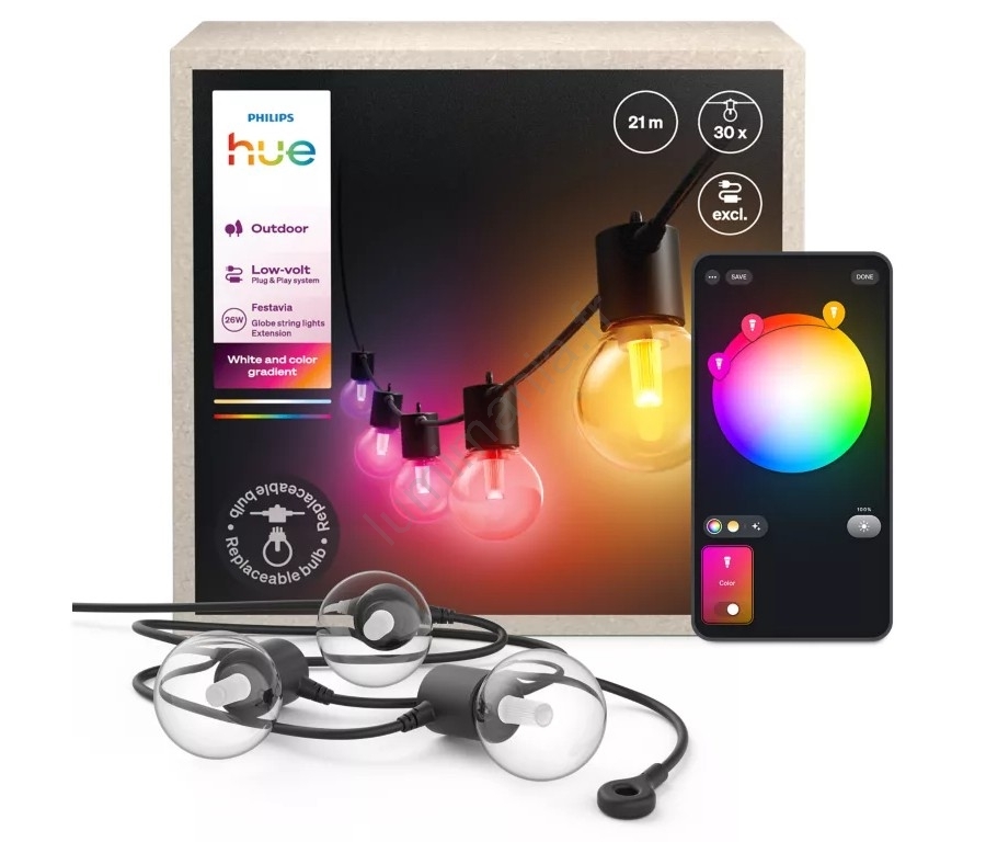 Éclairage connecté, Éclairage connecté d'extérieur, Éclairage d'extérieur, Éclairages extérieurs HUE, Éclairages extérieurs LED, Éclairages extérieurs LED, Guirlandes d'extérieur et guirlandes lumineuses, Luminaires, Marques, Philips, Philips Hue, ZigBee