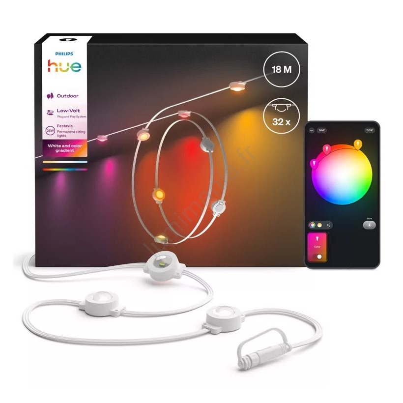 • Guirlande LED d'extérieur Philips Hue d'une longueur de 18 m.