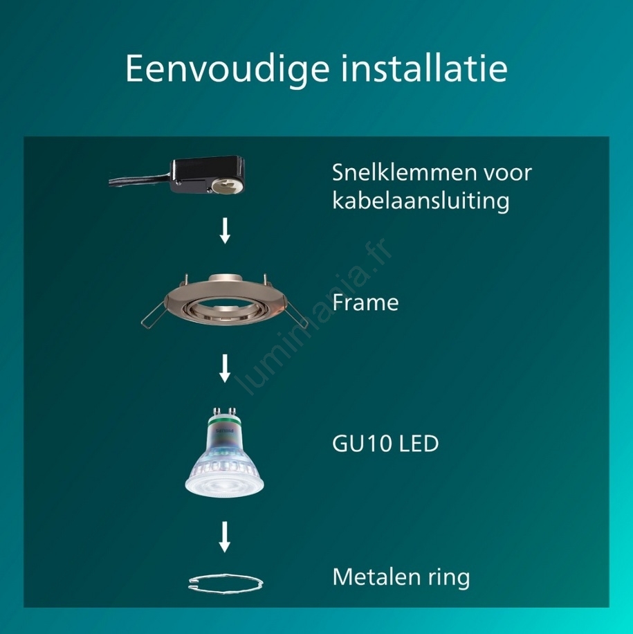 Philips - Lot de 3 spots encastrables PERIDOT 1xGU10/7W/230V, finition argentée caractérise un design agréable et fonctionnel.  Une ampoule à culot GU10 convient pour ce luminaire. Ici, vous pouvez acheter d'autres ampoules à des prix avantageux. Vous aurez un ajout intéressant dans votre intérieur.