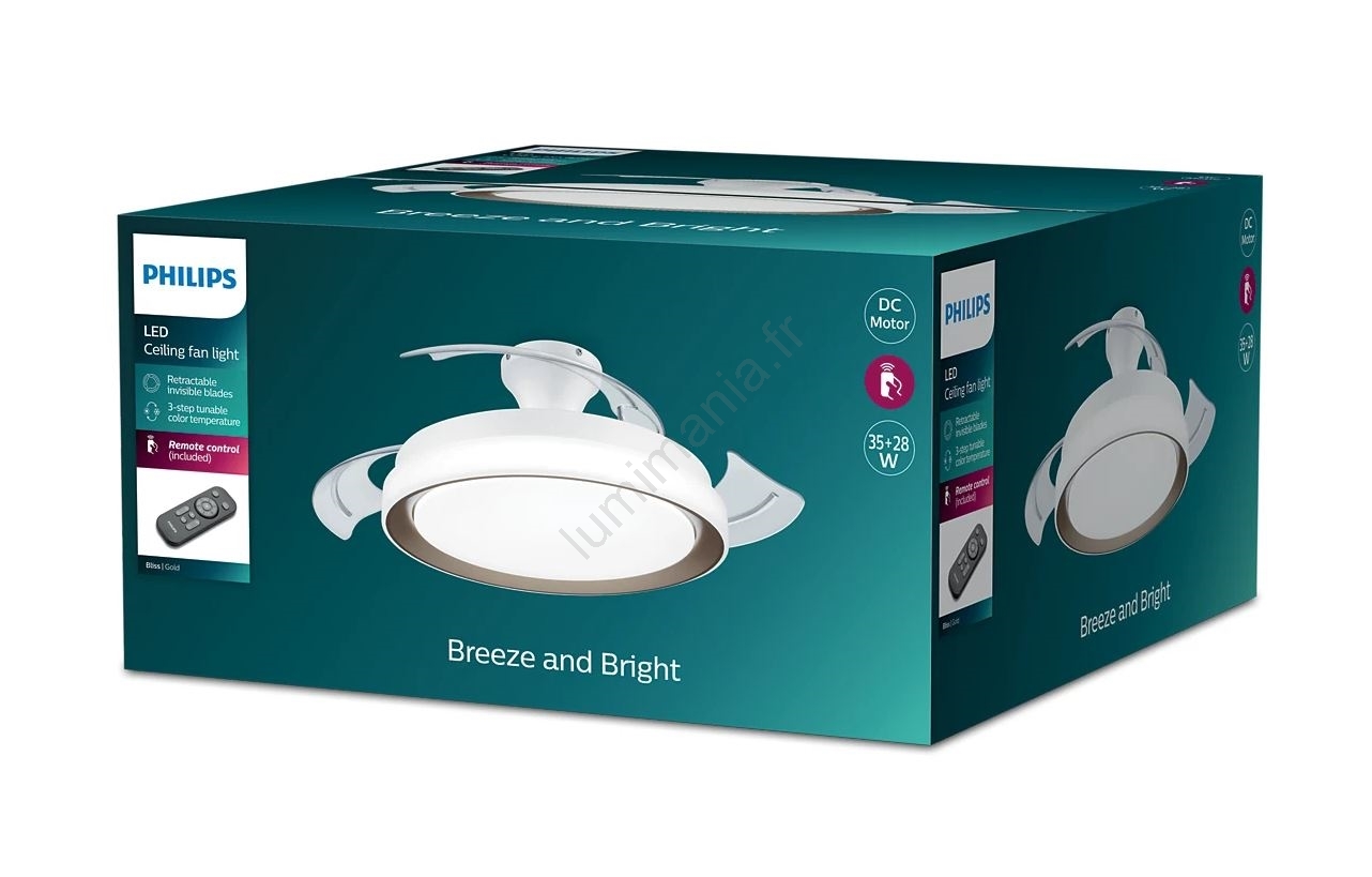 • Philips- Plafonnier avec ventilateur LED/35W/230V 5500/4000/2700K + Télécommande doré