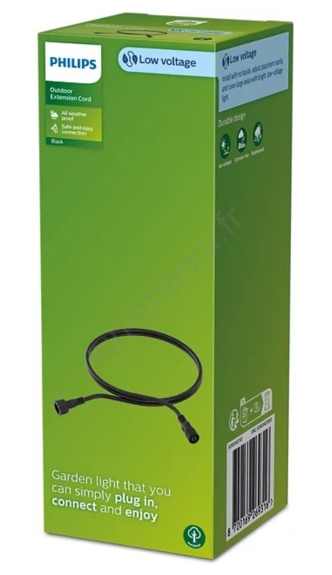 • Le câble d'extension extérieur est spécialement conçu pour les environnements humides en extérieur et a été rigoureusement testé pour sa résistance à l'eau.