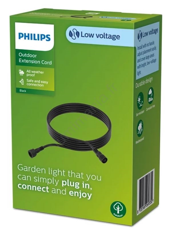 • Le câble d'extension extérieur est spécialement conçu pour les environnements humides en extérieur et a été rigoureusement testé pour sa résistance à l'eau.