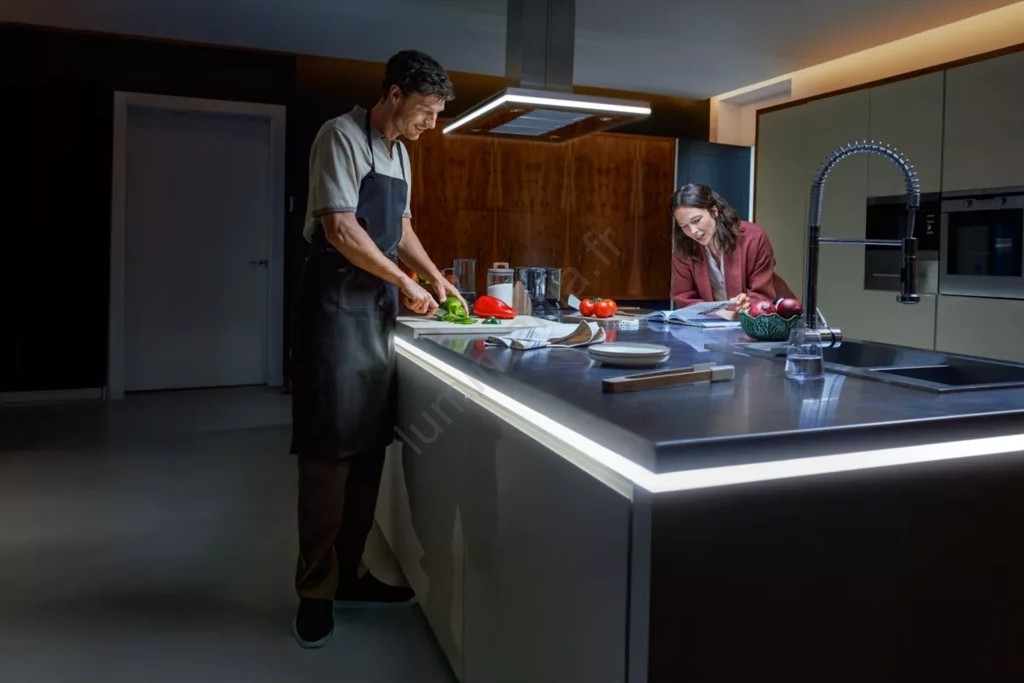 • Intégrez-le dans le mobilier, sous les meubles de cuisine ou mettez en valeur les lignes de votre intérieur grâce à cet agréable éclairage indirect.