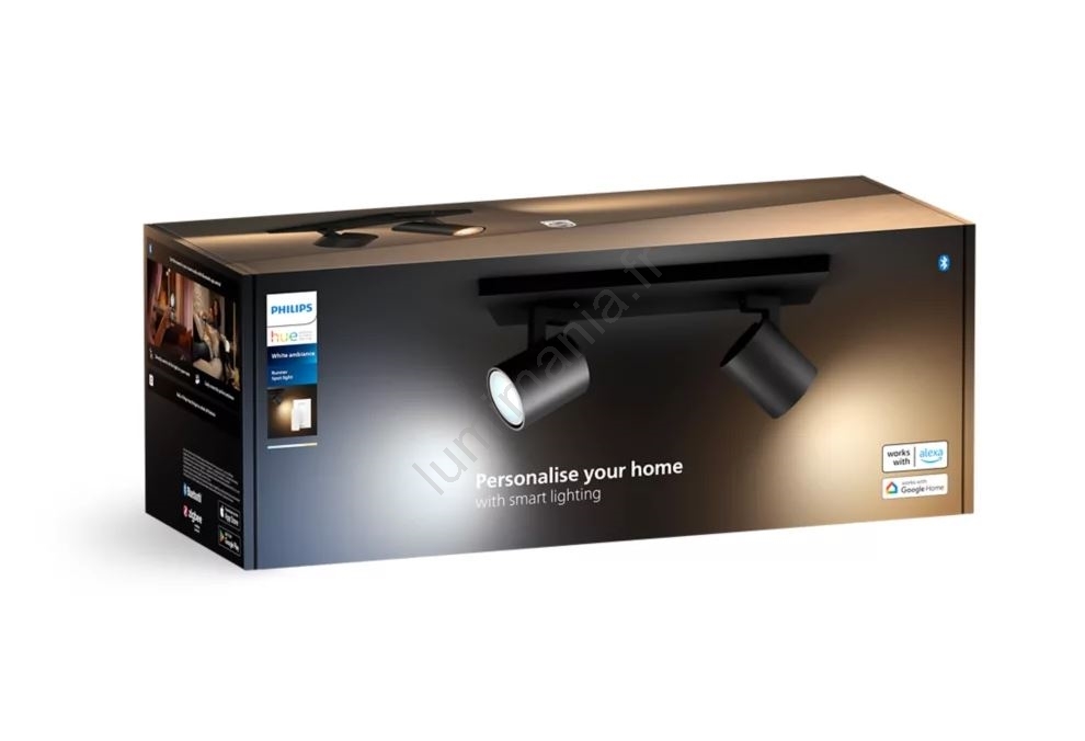 • Philips - Spot à intensité variable LED Hue RUNNER 2xGU10/4,2W/230V 2200-6500K + télécommande noir