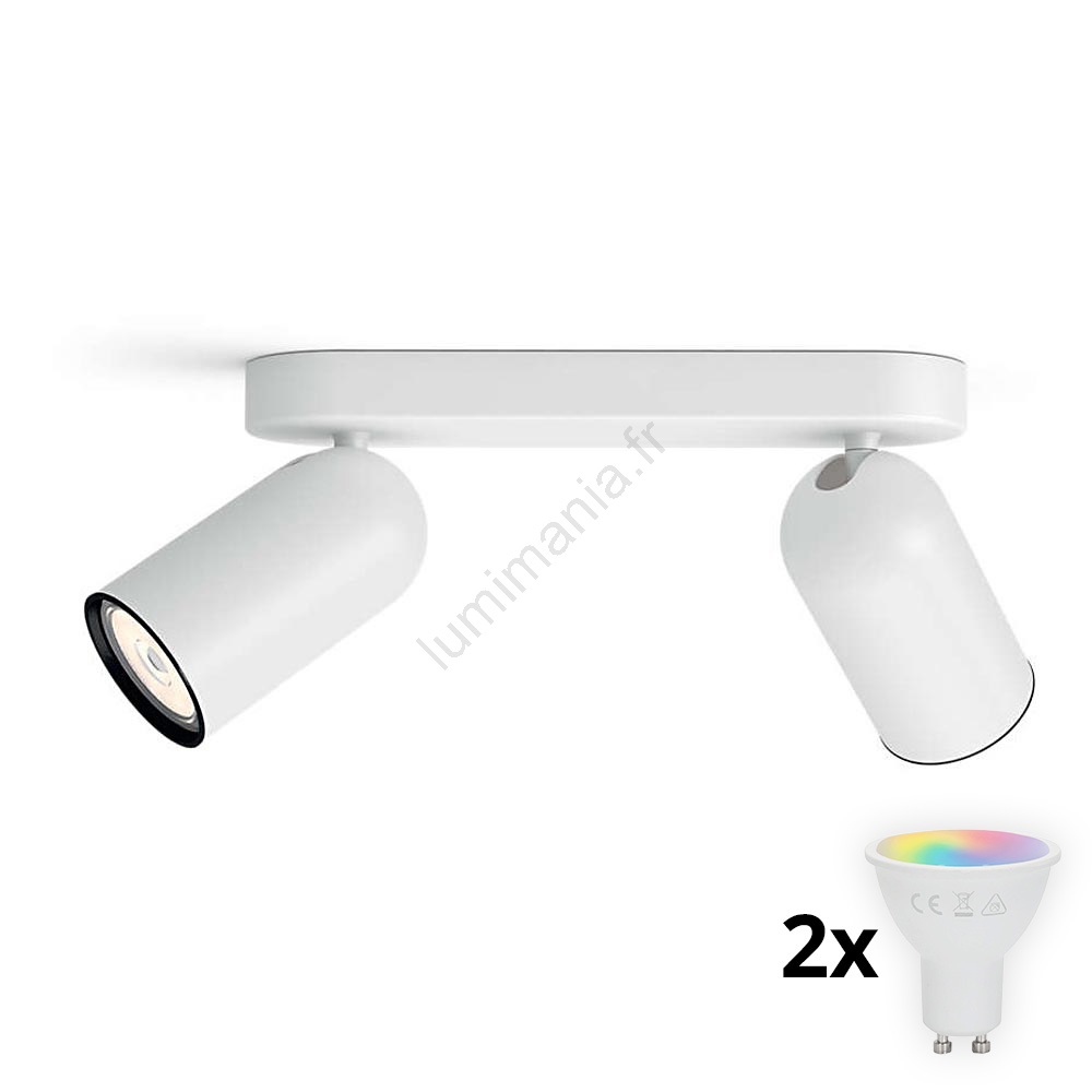 Philips - Spot LED RGBW dimmable PONGEE, 2x GU10, 4,8 W, 230 V, 3000 K, blanc, avec télécommande