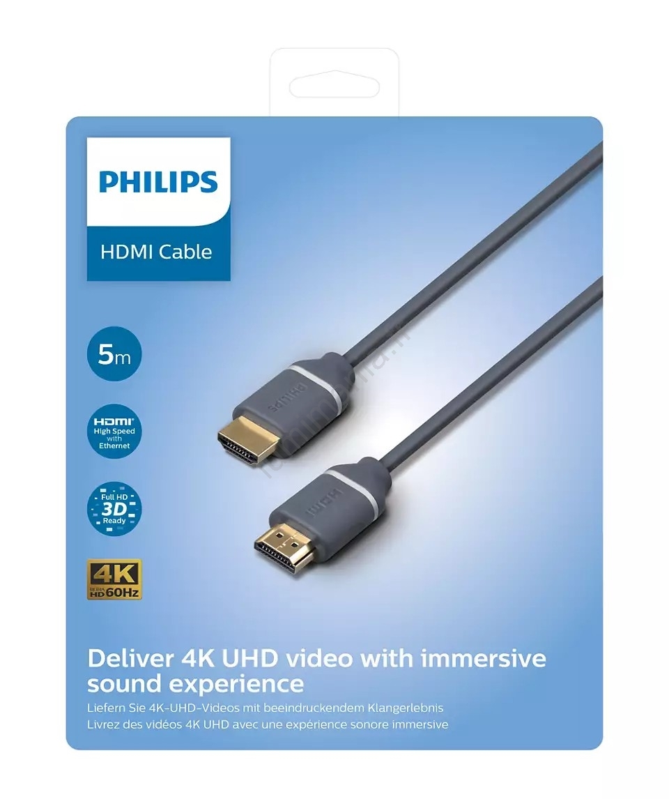 Philips SWV5650G/00 - Câble HDMI avec Ethernet, connecteur HDMI 2.0 A 5m gris