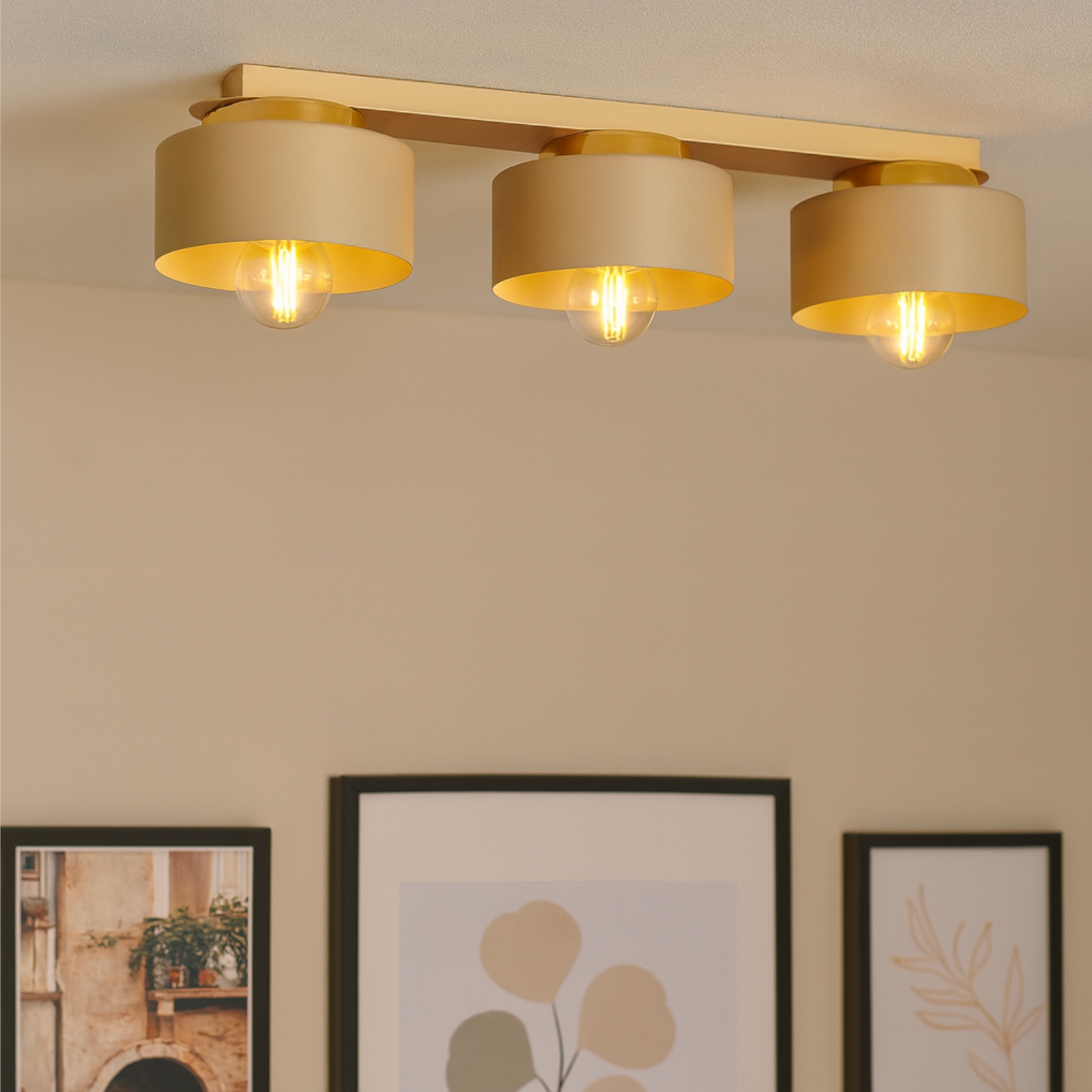 Plafonnier IGNIA 3xE27/60W/230V beige/doré caractérise un design agréable et fonctionnel.  Une ampoule à culot E27 convient pour ce luminaire. Ici, vous pouvez acheter d'autres ampoules à des prix avantageux. Vous aurez un ajout intéressant dans votre intérieur.