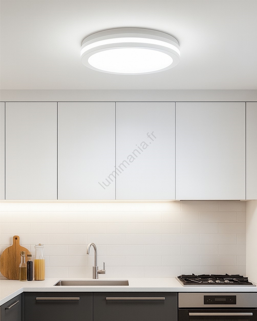 Plafonnier LED pour salle de bains avec détecteur de mouvement, 20 W, 230 V, 3000/4000/6500 K, Ø 23 cm, IP54, blanc