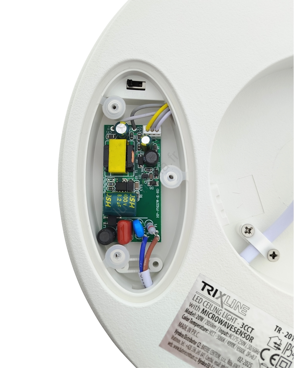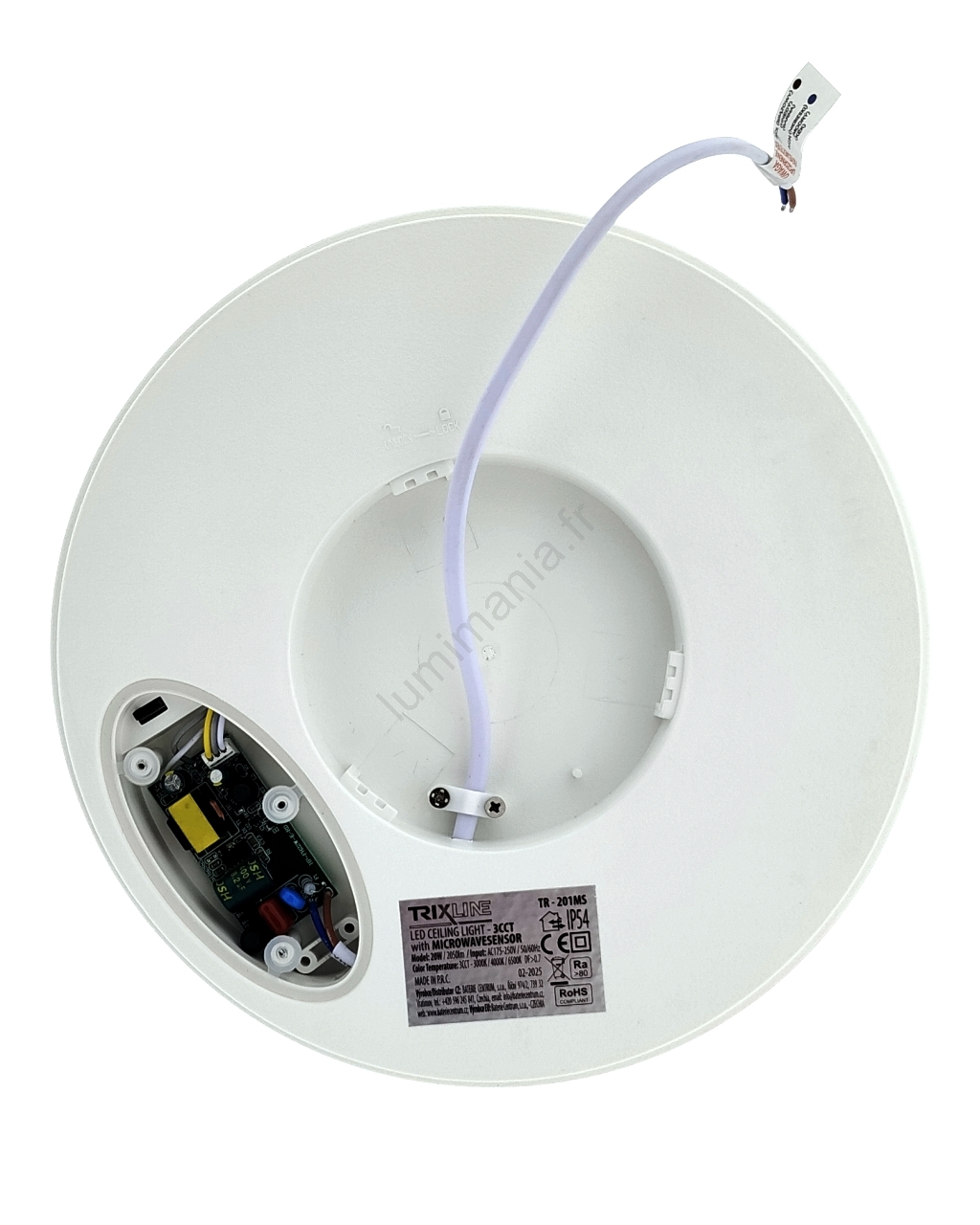 • Plafonnier LED pour salle de bains avec détecteur de mouvement, 20 W, 230 V, 3000/4000/6500 K, Ø 23 cm, IP54, blanc
