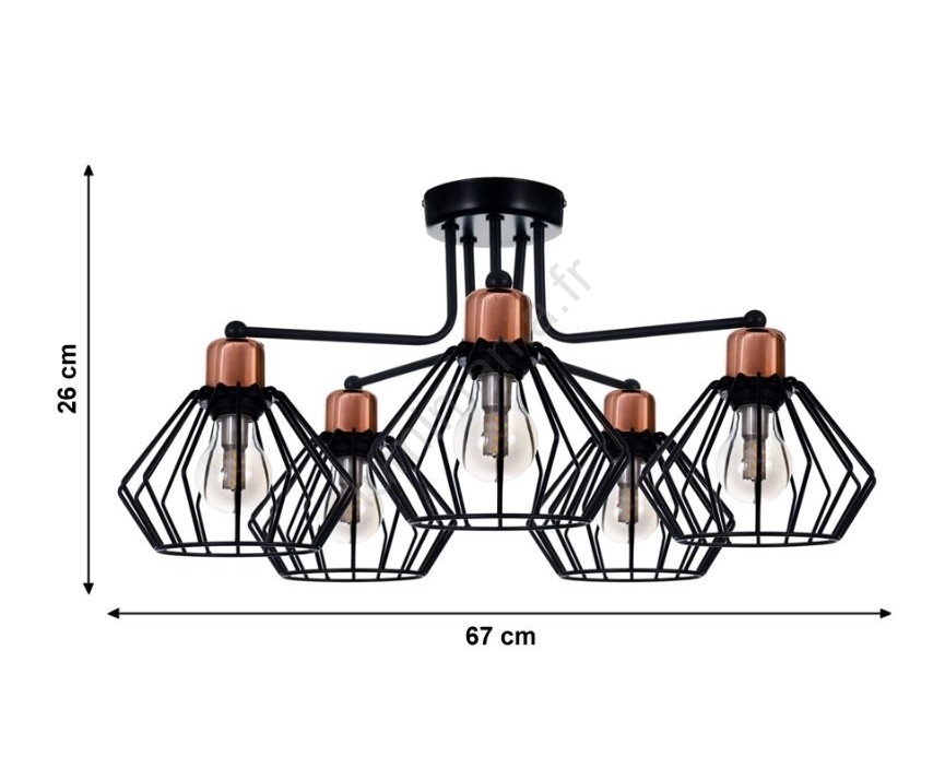 Plafonnier PORTO 5xE27/40W/230V caractérise un design agréable et fonctionnel.  Une ampoule à culot E27 convient pour ce luminaire. Ici, vous pouvez acheter d'autres ampoules à des prix avantageux. Vous aurez un ajout intéressant dans votre intérieur.