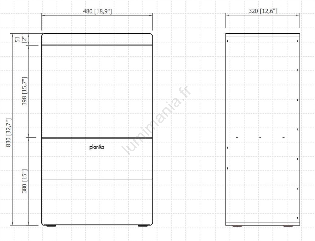 • Dimensions de la cheminée : 83 x 48 x 32 cm.