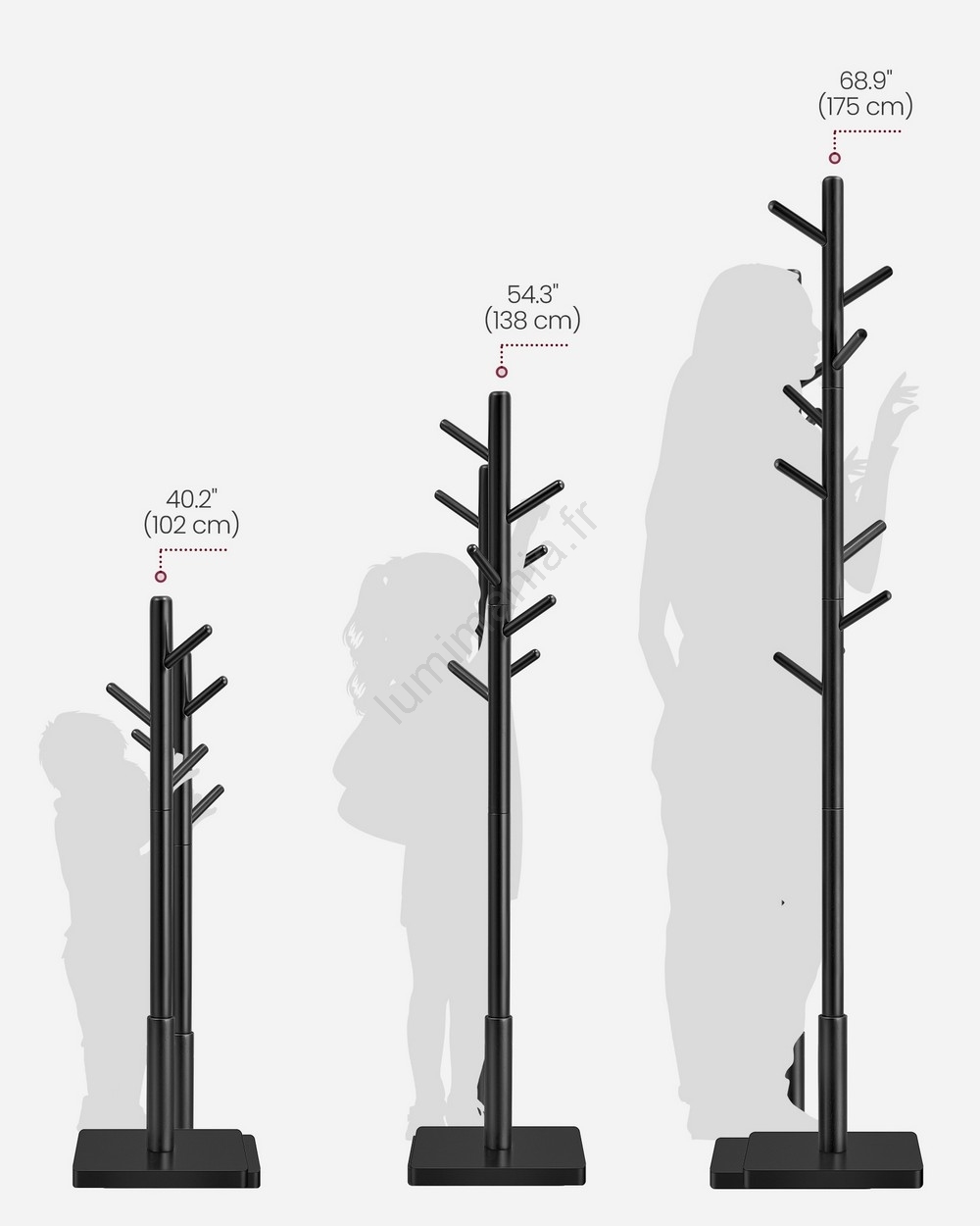 • Avec 8 patères arrondies à différentes hauteurs, il offre suffisamment d'espace pour manteaux et sacs afin d'éviter les chevauchements - il est également idéal pour tous les membres de la famille et même les plus petits accrocheront leurs manteaux avec plaisir.