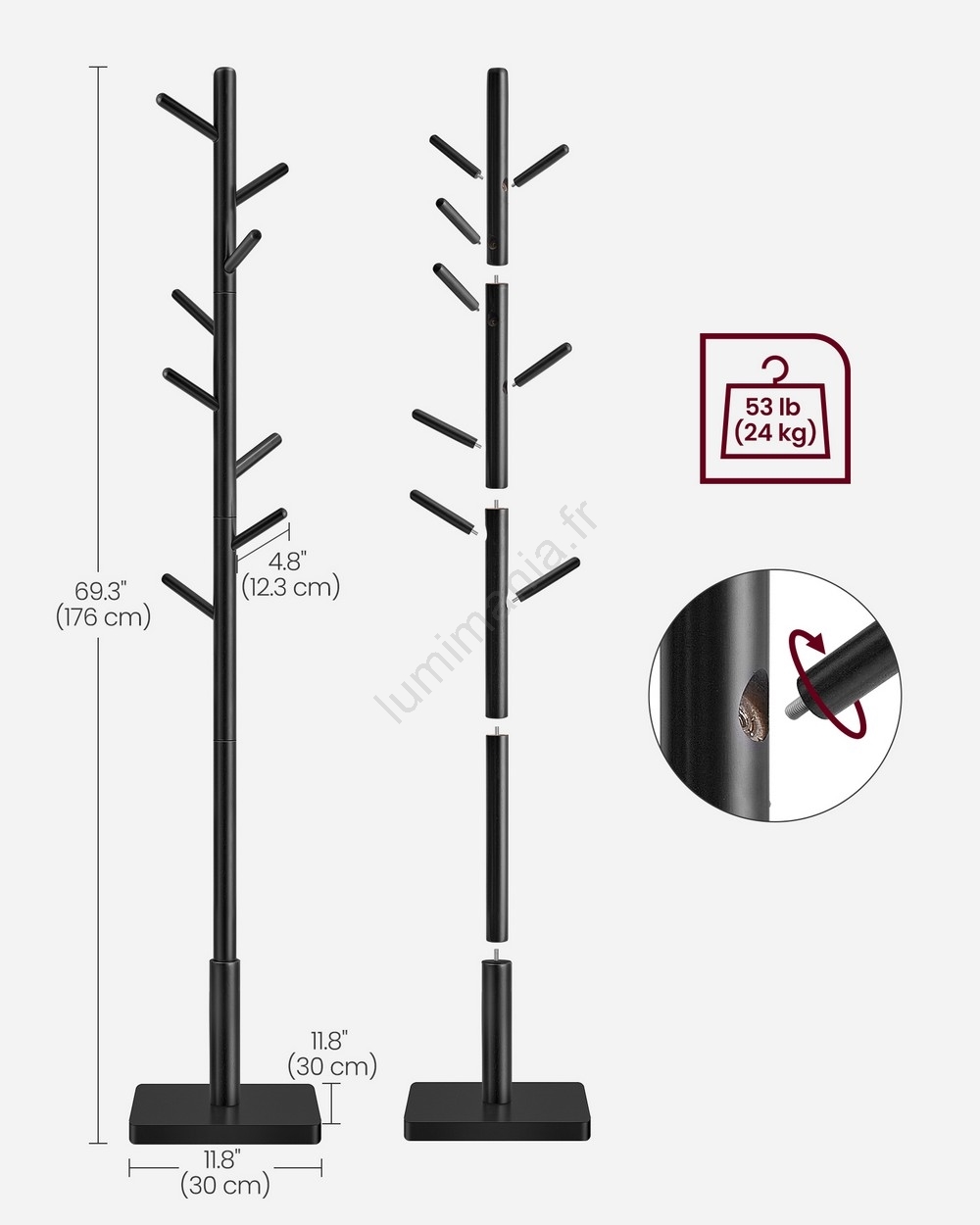 • Mât massif en bois d'hévéa et socle carré de 30 x 30 cm, sont conçus pour garantir stabilité et robustesse.