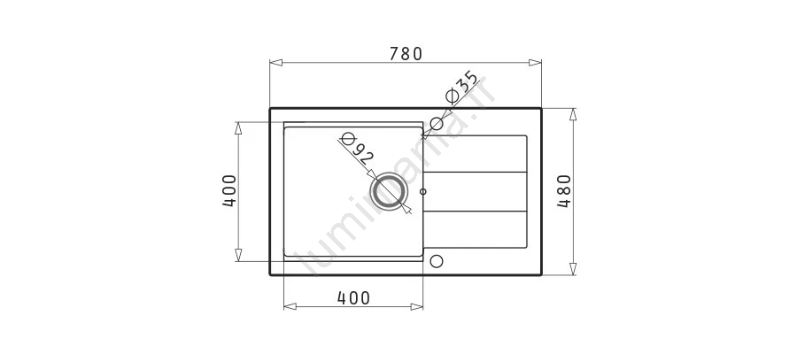 • Évier réversible - la cuve peut être à gauche ou à droite.