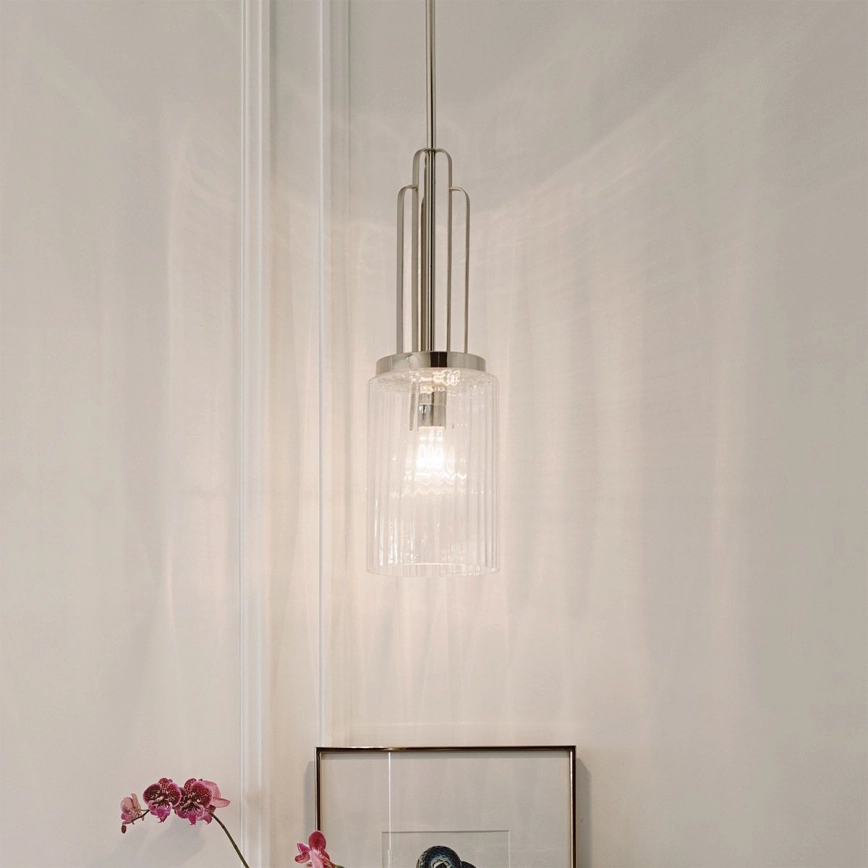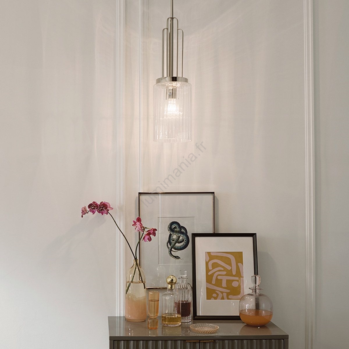 Quintiesse - Lustre sur tige KIMROSE 1xE27/60W/230V diam. 17,8 cm chrome brillant caractérise un design agréable et fonctionnel.  Une ampoule à culot E27 convient pour ce luminaire. Ici, vous pouvez acheter d'autres ampoules à des prix avantageux. Vous aurez un ajout intéressant dans votre intérieur.