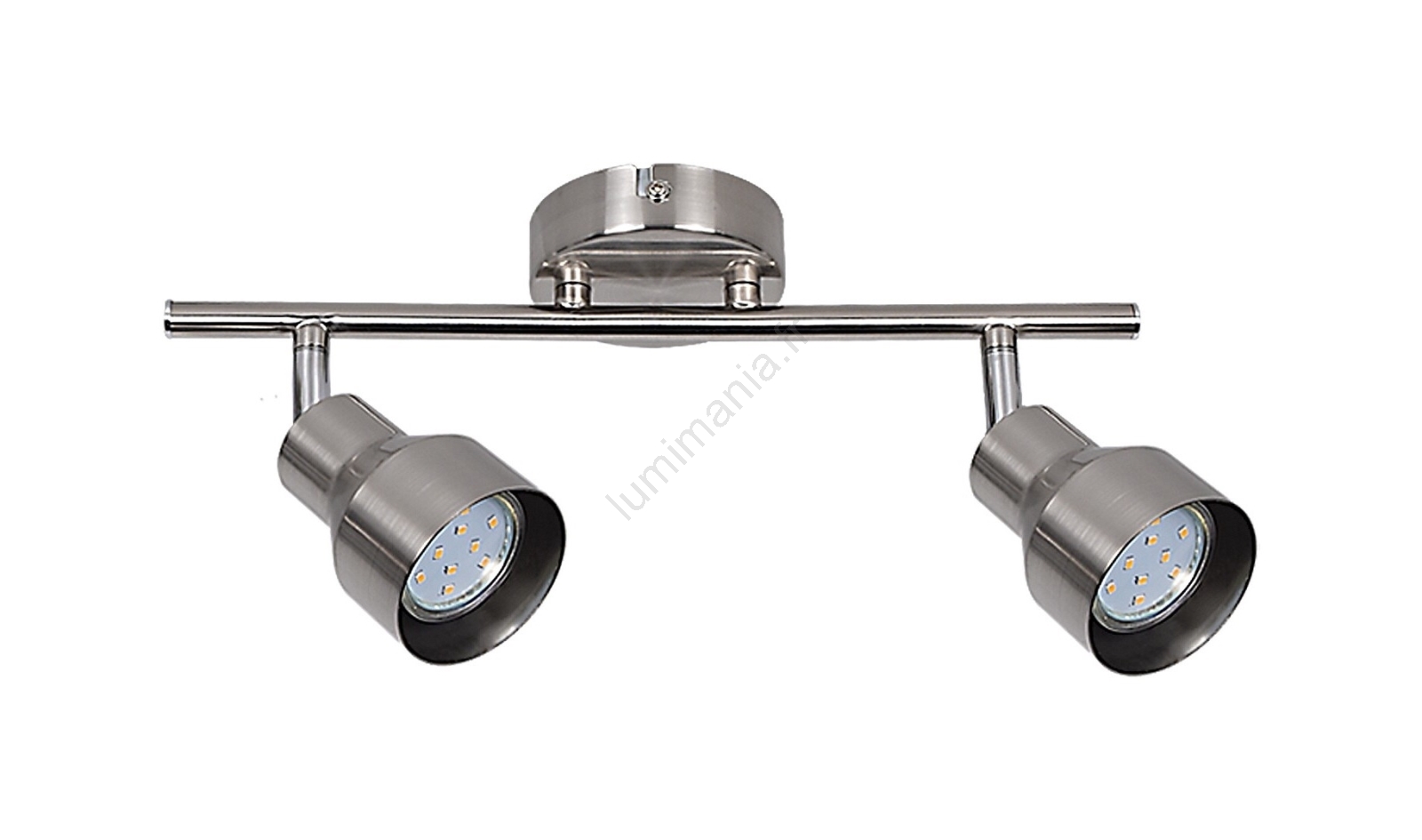 Le spot double moderne Blake est un excellent choix pour différentes pièces de votre appartement : il peut être installé dans le salon, la chambre, la salle à manger ou même la cuisine. Ce luminaire entièrement en métal avec une finition chrome satiné se fixe au mur grâce à une base décorative ronde. Les têtes flexibles du luminaire sont montées sur une barre horizontale fixée à la base décorative. Le spot Blake est compatible avec deux ampoules d’une puissance maximale de 50W chacune. Le type de culot est GU10. Selon vos préférences et l’emplacement d’installation, vous pouvez choisir des sources lumineuses à lumière chaude ou blanche naturelle. Ce spot s’allume et s’éteint via un interrupteur situé sous la base décorative. Les dimensions de ce spot double sont les suivantes : largeur 340 mm, hauteur 145 mm, distance au plafond 120 mm. Ce modèle est livré sans source lumineuse.