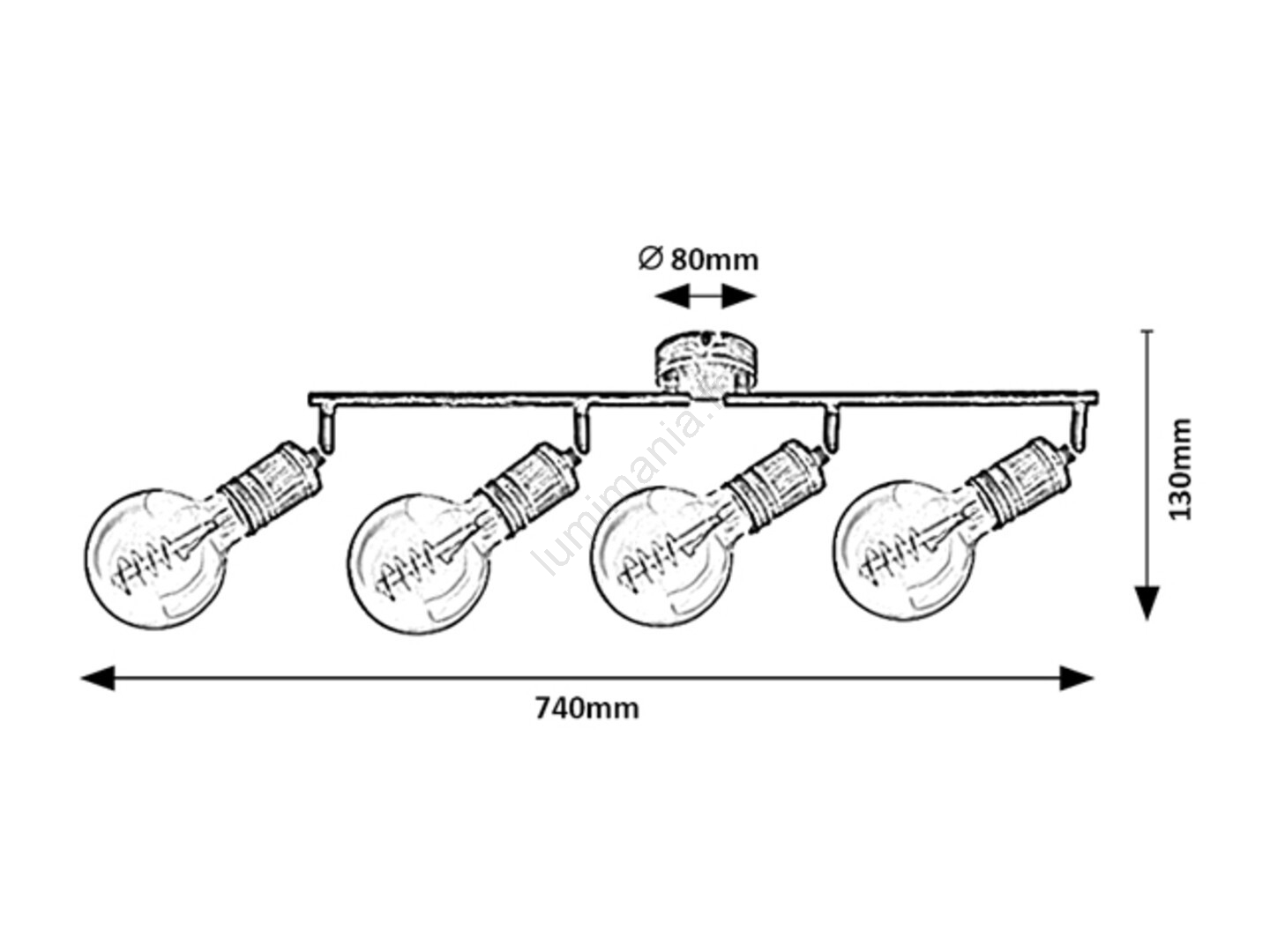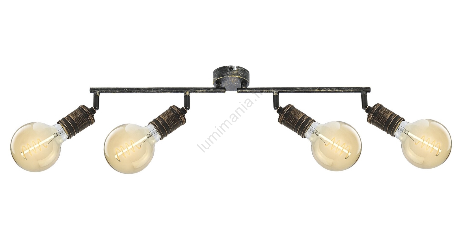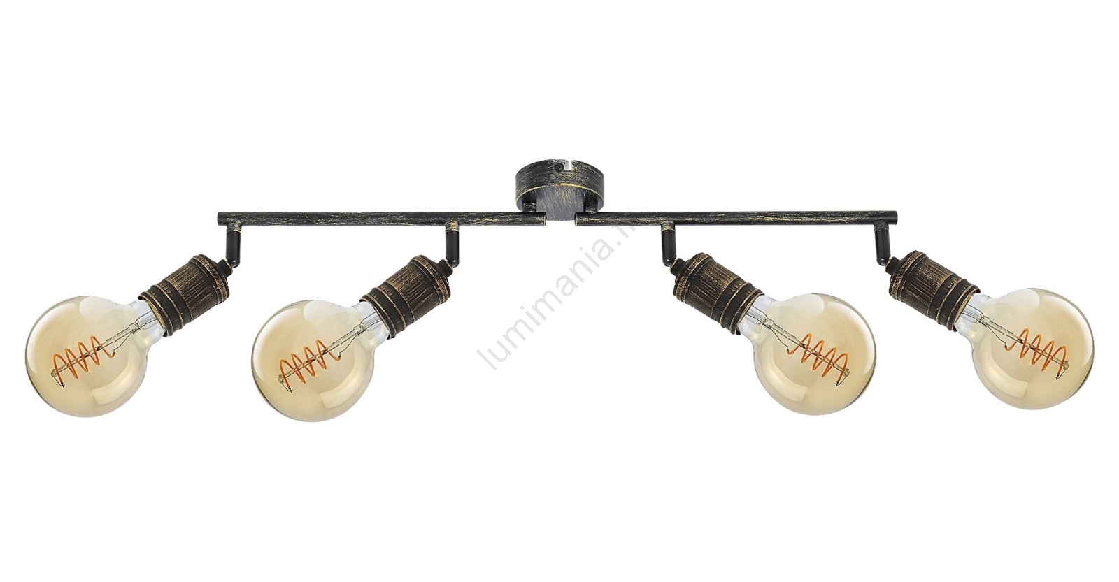 Le spot Fidel à 4 ampoules au style industriel est une excellente option pour différentes pièces de votre appartement : il peut être installé dans le salon, la chambre, la salle à manger ou même la cuisine. Ce luminaire en métal doré antique se fixe au mur grâce à un petit support décoratif rond. Les 4 têtes du luminaire sont montées sur une barre porteuse composée de deux parties et fixées à une base décorative. Les ampoules sont libres. Le luminaire Fidel peut être utilisé avec 4 ampoules, chacune d’une puissance maximale de 25W. Le type de culot est E27. Selon vos préférences et l’emplacement d’installation, vous pouvez choisir pour ce luminaire des sources lumineuses à lumière chaude ou blanche naturelle. Grâce aux têtes flexibles, vous pouvez orienter la lumière de ce plafonnier selon vos besoins. Les dimensions du spot Fidel à 4 ampoules sont les suivantes : largeur 740 mm, hauteur 130 mm, distance du plafond 115 mm, diamètre d’installation 80 mm. Ce modèle est livré sans sources lumineuses.