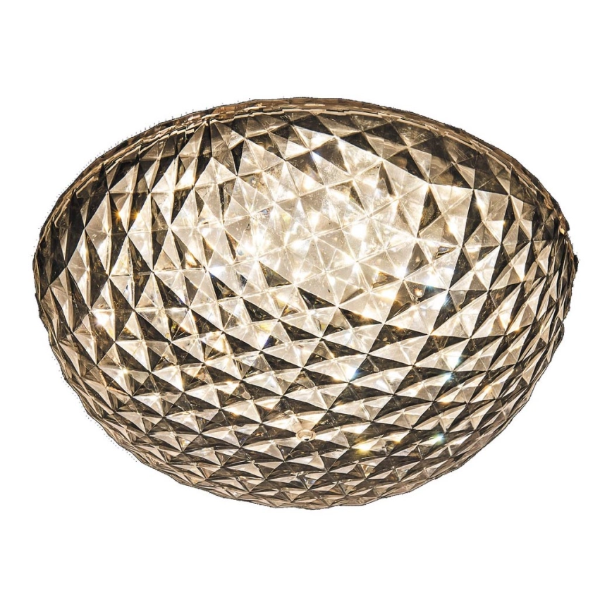 Le plafonnier Jillian sera un excellent choix pour ceux qui préfèrent la technologie LED moderne, mais qui aiment aussi les motifs de style classique et les formes arrondies. La lampe à abat-jour ambré est en métal et en acrylique et dispose d'une source lumineuse LED intégrée. La consommation électrique de la source lumineuse est de 18 W et son intensité lumineuse est de 1 800 lumens. La température de couleur de la lampe est de 3 000 kelvins, ce qui signifie qu'elle éclaire la pièce d'une lumière blanche et chaude, et nous la recommandons donc pour votre chambre à coucher ou votre salon. La lumière circulaire a un diamètre de 305 mm et une distance de 130 mm par rapport au plafond. Le plafonnier LED Jillian est garanti 5 ans.